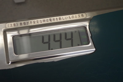 體重は4.44kgになってました。以前は5kg臺だったのを考へるとお歳ですかね。