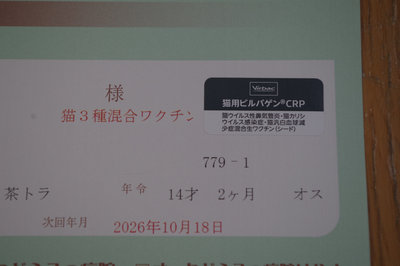 病院から案内が来てたので茶トラのワクチン接種に行って来ました。午前中は福を實家へ連れて行ってたので午後に行くしかありません。明日は休診日ですし、来週末は深夜の買ひ出し豫定があるので土曜の午後は恐らく疲れて寢てる筈(^^;